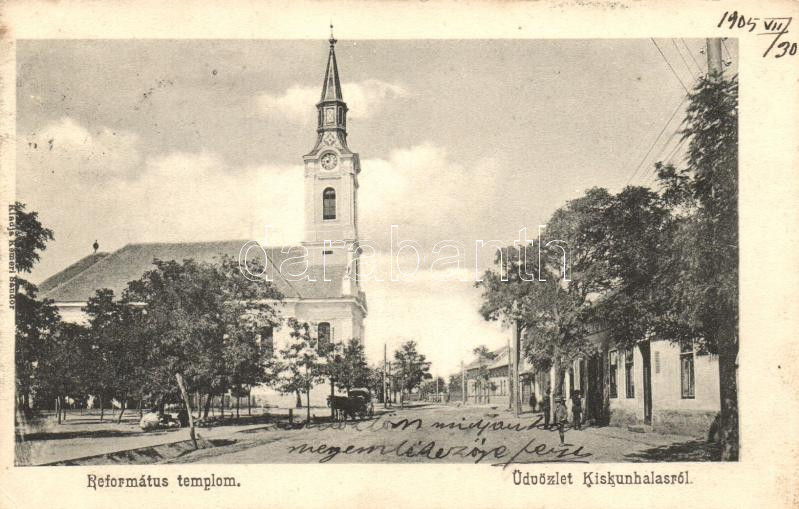 Kiskunhalas, Református templom, kiadja Kemeri Sándor (EK) https://www.darabanth.com/de/265-Fernauktion/265.0/Ansichtskarten/Ungarn~300059/Kiskunhalas-Reformatus-templom-kiadja-Kemeri-Sandor-EK~II1328060