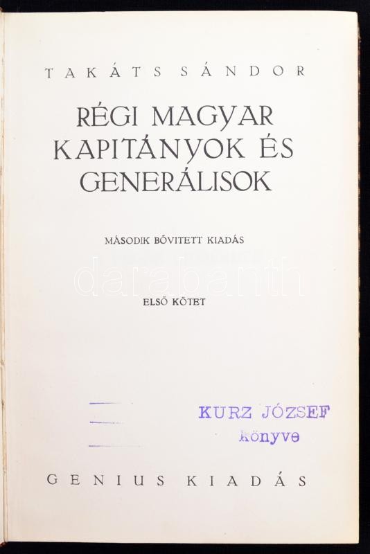 Takáts Sándor: Régi magyar kapitányok és generálisok I-II. Bp., é.n., ... https://www.darabanth.com/de/265-Fernauktion/265.0/Bucher/Bucher-Geschichte~200299/Takats-Sandor-Regi-magyar-kapitanyok-es-generalisok-I-II-Bp-en-Genius-641-p-Dusan-a~II1296366