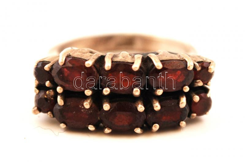 Beschreibung: Ezüst(Ag) gyűrű gránát kövekkel díszítve, jelzett, méret: 55, br: 7 g