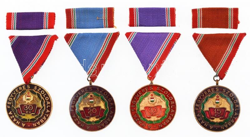 ~1970. "A Haza Fegyveres Szolgálatában" 15, 20 és 30 (2x) év után, fém kitüntetések, mind mellszalagon, szalagsávval, dísztokban (egyik tok sérült) T:1-2
