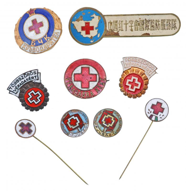 Beschreibung: 9db-os "Vöröskereszt" jelvény tétel, benne "Többszörös véradásért", "Magyar Vöröskereszt Ifjúsági", "Véradásra kész" T:2,2-