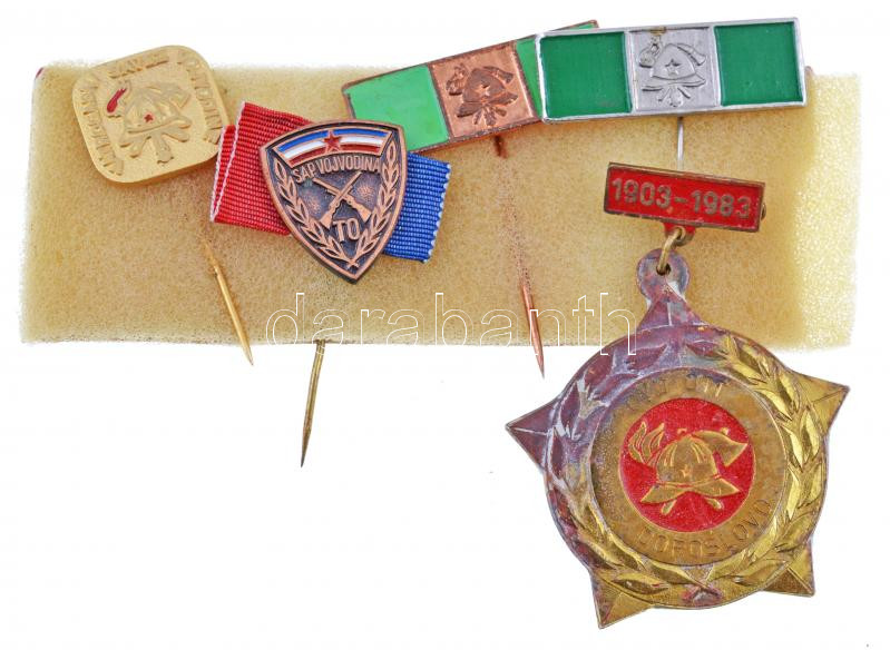 Beschreibung: Jugoszlávia ~1980. 5db klf tűzoltó kitűző és jelvény T:2