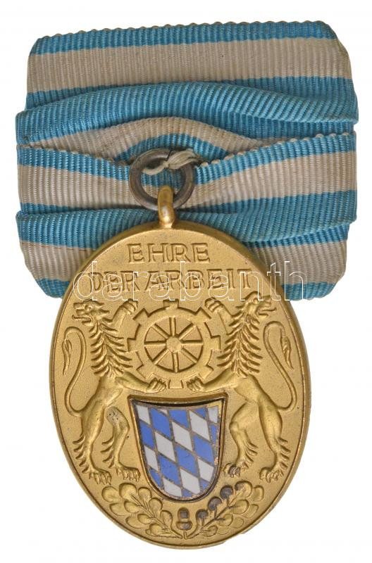 Németország DN "A munka becsülete / Bajor Iparszövetség - A 40 éves hűséges szolgálatért" aranyozott, jelzett, részben zománcozott Ag kitüntetés mellszalagon T:2 Germany ND "Bavarian Chamber of Industry and Commerce Silver Medal of Honour for 40 Years Loyal Service" gilt, hallmarked, partially enamelled Ag decoration with ribbon C:XF