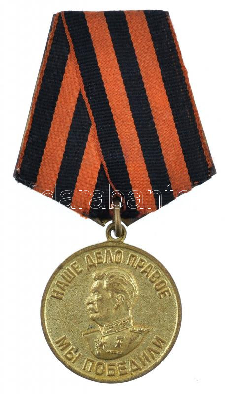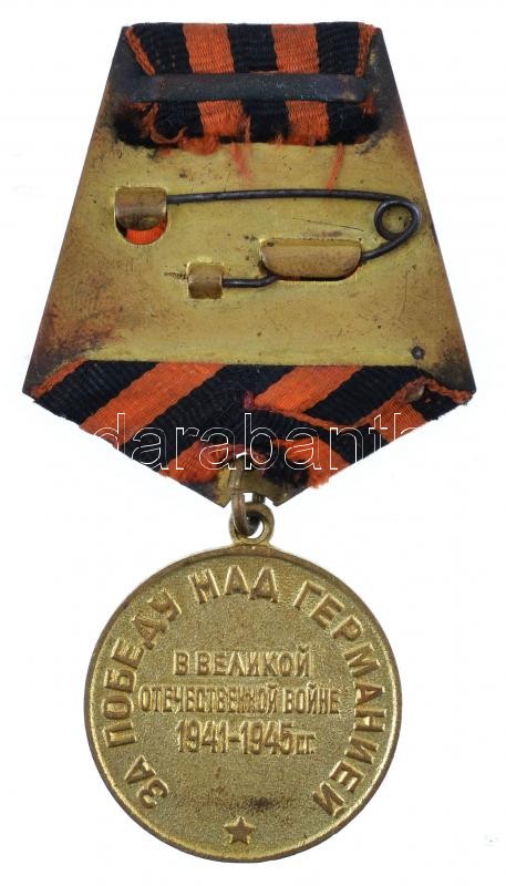 Szovjetunió 1945. "A Németország felett aratott győzelemért az 1941-1945-ös Nagy Honvédő Háborúban" sárgaréz kitüntetés mellszalaggal T:2