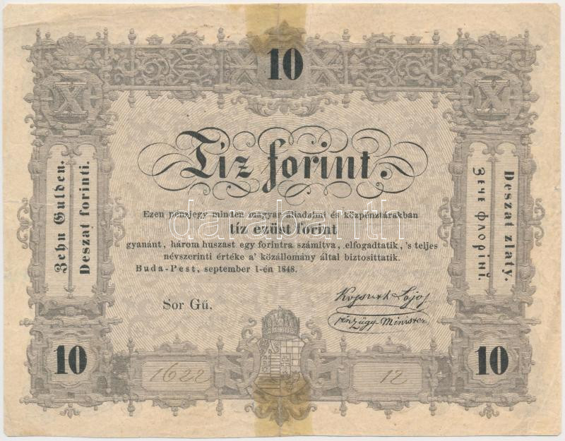 Adamo G111 https://www.darabanth.com/de/265-Fernauktion/265.0/Numismatik/Ungarische-Banknoten~400007/1848-10Ft-Kossuth-banko-TIII-ragasztott--Adamo-G111~II1327322