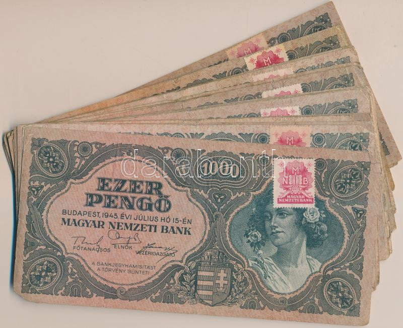 Beschreibung: 1945. 1000P (30x) mind piros "MNB" bélyeggel T:vegyes