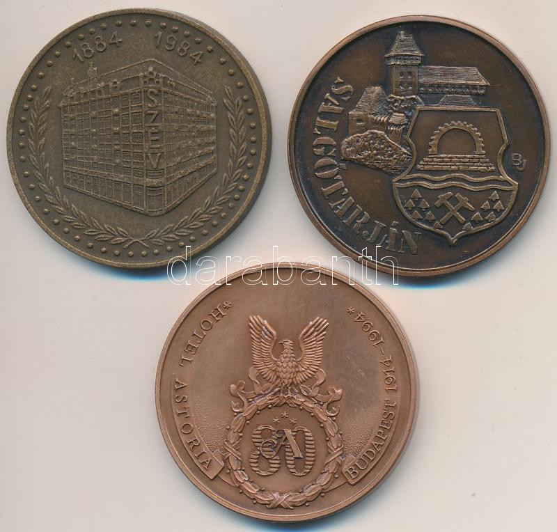 Beschreibung: Blaskó János (1945-) 1985. "Salgótarján / Magyarország - Csehszlovákia Államközi Bélyegkiállítás" Br emlékérem (43mm) + Bozó Gyula (1913-2004) 1994. "Hotel Astoria Budapest 1914-1994 / Vándor voltam és befogadtatok (Máté, 25)" Br emlékérem (42,5mm) + 1984. "Szerelvényértékesítő Vállalat 100 éves" Br emlékérem (42,5mm) T:2