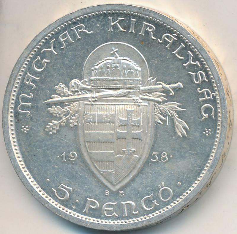 Adamo P... https://www.darabanth.com/de/265-Fernauktion/265.0/Numismatik/Ungarische-Munzen-und-Munzen-mit-ungarischem-Munzzeichen~400008/1938-5P-Ag-Szent-Istvan-T1-2-sok-feluleti-karc--Adamo-P81~II1322072