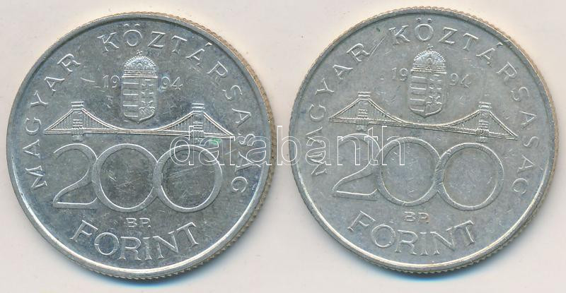 Beschreibung: 1994. 200Ft Ag "Deák" (2x) T:2,2-
