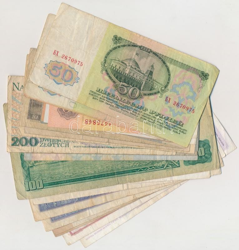 31db vegyes külföldi bankjegy, közte román, jugoszláv, szovjet bankjegyek T:III