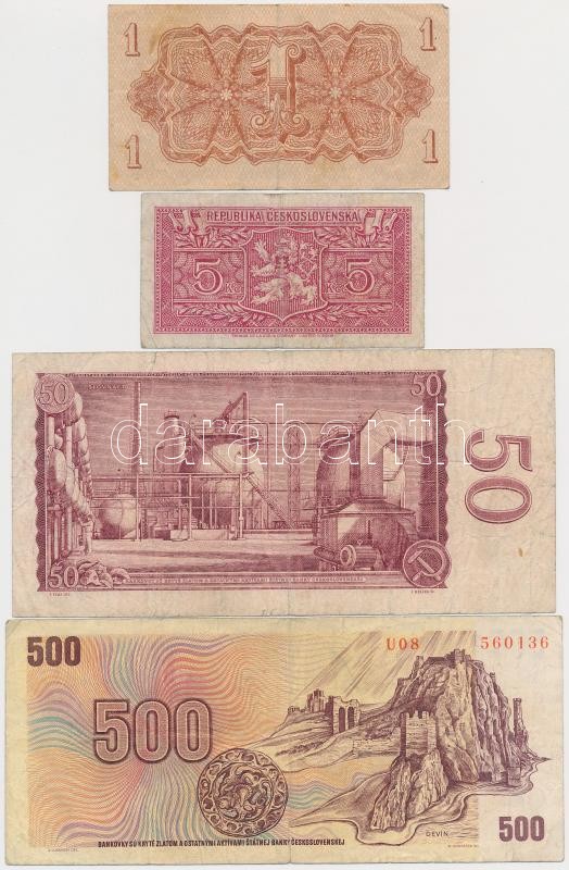 ... https://www.darabanth.com/de/265-Fernauktion/265.0/Numismatik/Weltweit-Banknoten~400012/Csehszlovakia-1944-1K-plus-1945-5K-plus-1964-50K-plus-1973-500K-TIII-III---Czechslovakia-1944-1-Korun-~II1322244