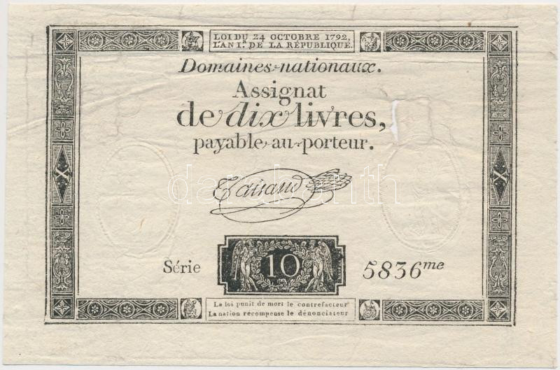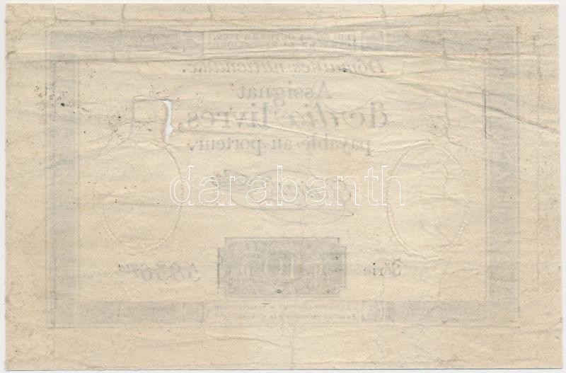 Franciaország 1792. 10L "Assignata" vízjellel és szárazpecséttel T:III- ly.