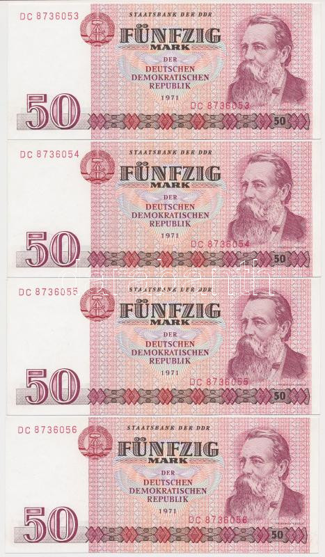 GDR 1971. 50 Mark (4x) sequenti... https://www.darabanth.com/de/265-Fernauktion/265.0/Numismatik/Weltweit-Banknoten~400012/NDK-1971-50M-4x-sorszamkovetok-TI--GDR-1971-50-Mark-4x-sequential-serials-CUNC~II1322265