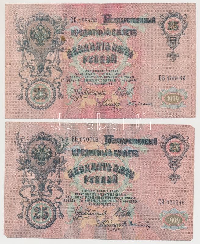 Orosz Birodalom 1912-1917. (1909) 25R 2xklf színárnyalat Szign.: Shipo... https://www.darabanth.com/de/265-Fernauktion/265.0/Numismatik/Weltweit-Banknoten~400012/Orosz-Birodalom-1912-1917-1909-25R-2xklf-szinarnyalat-Szign-Shipov-TIII-egyiknel-sarokhian~II1324007