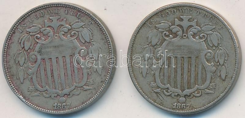 Beschreibung: Amerikai Egyesült Államok 1867. 5c Cu-Ni "Shield" (2xklf) T:2- kis ph.