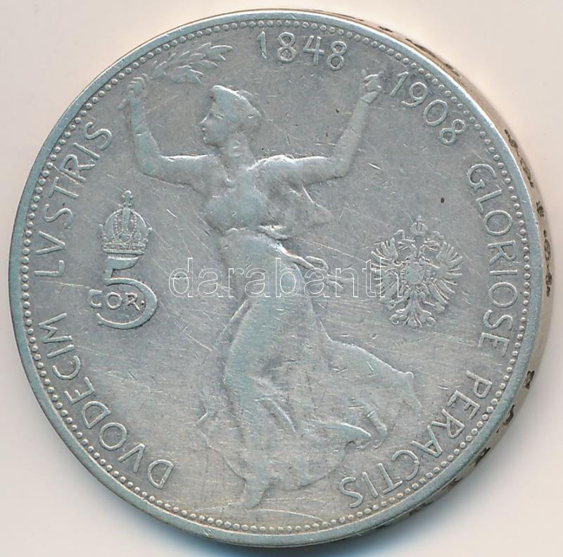 Austria 1908. 5 Corona... https://www.darabanth.com/de/265-Fernauktion/265.0/Numismatik/Weltweit-Munzen~400013/Ausztria-1908-5K-Ag-Jubileum-T3---Austria-1908-5-Corona-Ag-Jubilee-CF~II1287798