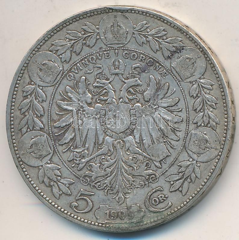 Austria 1909. 5 Corona Ag "Franz Joseph" C:VF,F edge error, patina