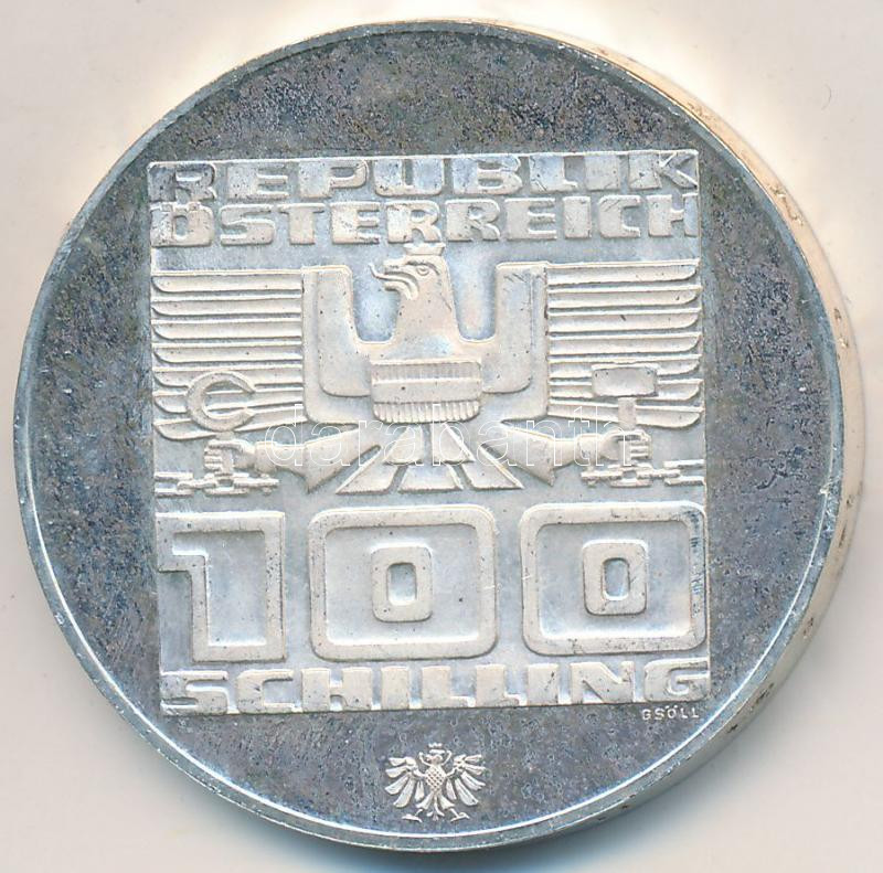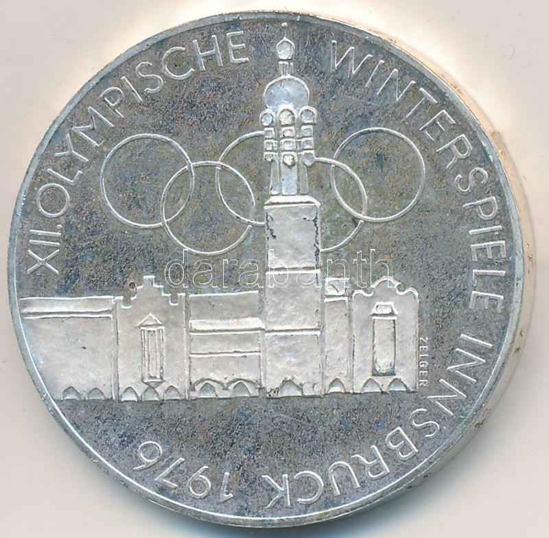 Ausztria 1976. 100Sch Ag "Innsbruck - XII. Téli olimpia / Épületek és olimpiai logó" T:2 (PP) Austria 1976. 100 Schilling Ag "Winter Olympics Innsbruck / Buildings and Olympic logo" C:XF (PP)