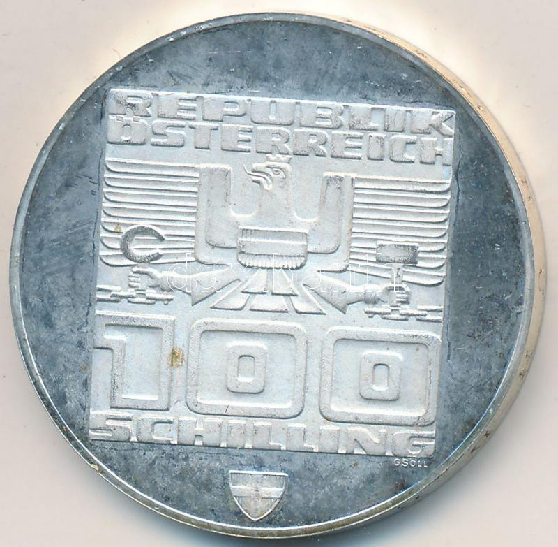 Ausztria 1976. 100Sch Ag "Innsbruck - XII. téli olimpia / Lesikló sánc" T:PP ujjlenyomat Austria 1976. 100 Schilling Ag "Winter Olympics Innsbruck / Ski take-off ramp" C:PP fingerprint