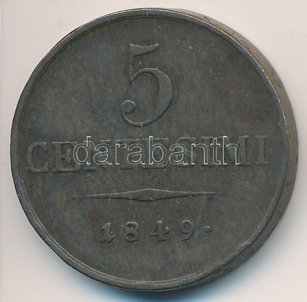 Italian States / L... https://www.darabanth.com/de/265-Fernauktion/265.0/Numismatik/Weltweit-Munzen~400013/Olasz-Allamok-Lombardia-Velence-1849M-5c-Cu-T2---Italian-States-Lombardy-Venetia-1849M-5-Cente~II1326388
