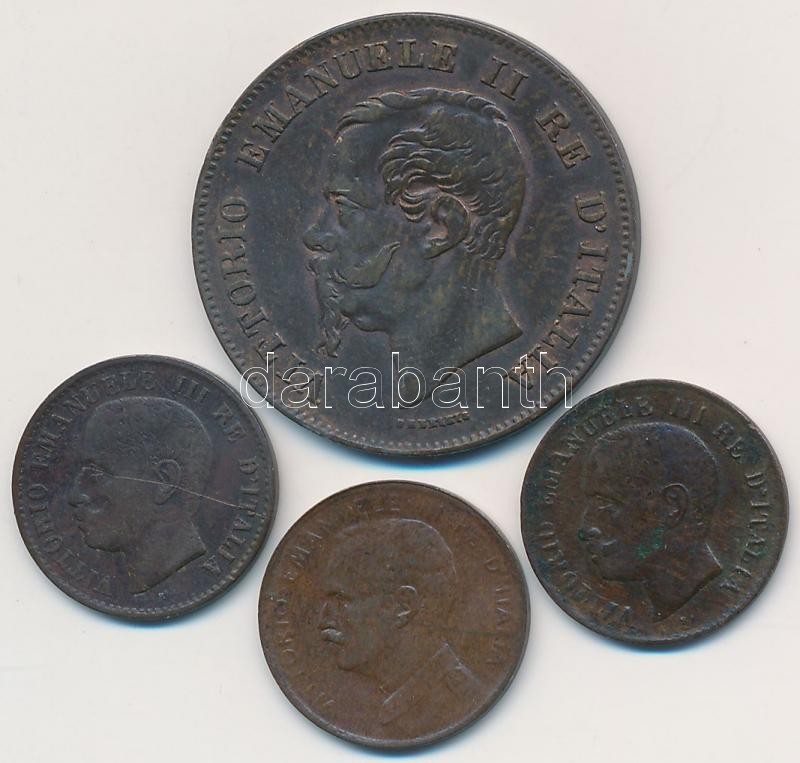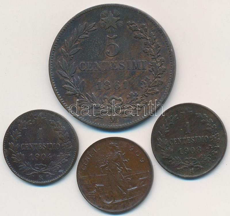 Olaszország 1861M 5c Cu + 1904R 1c Cu + 1908R 1c Cu + 1909R 1c Cu T:2,2-