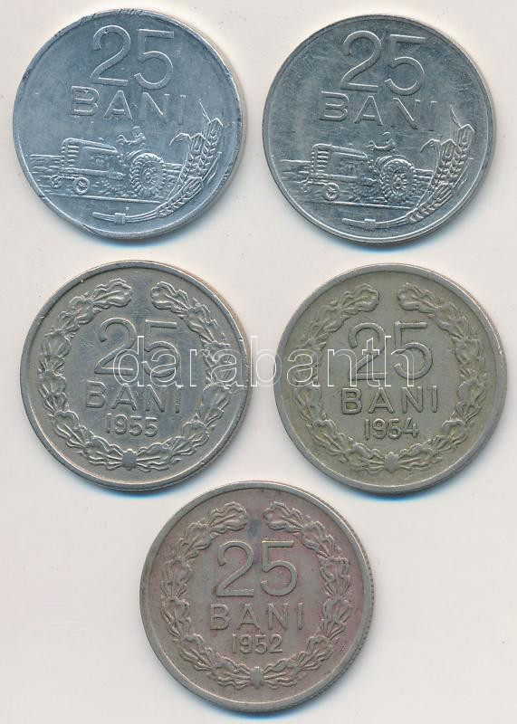 Romania 1952-1982. 25 Bani (5xdiff) C:XF,VF