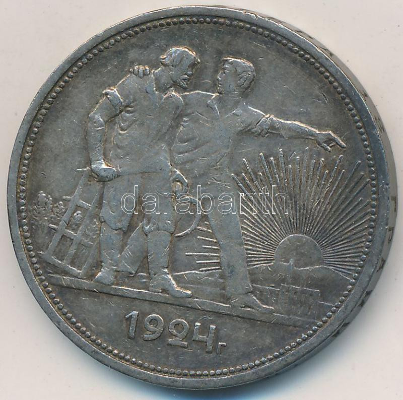 Soviet Union 1924. 1 Rouble Ag C:... https://www.darabanth.com/de/265-Fernauktion/265.0/Numismatik/Weltweit-Munzen~400013/Szovjetunio-1924-1R-Ag-T2-2-ph---Soviet-Union-1924-1-Rouble-Ag-CXF-VF-edge-error---Krause-KM23~II1325485