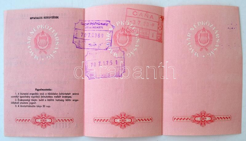 Beschreibung: 1970 Szeged, rendőrkapitánysági kiutazási engedély Csehszlovákia és Lengyelország területére