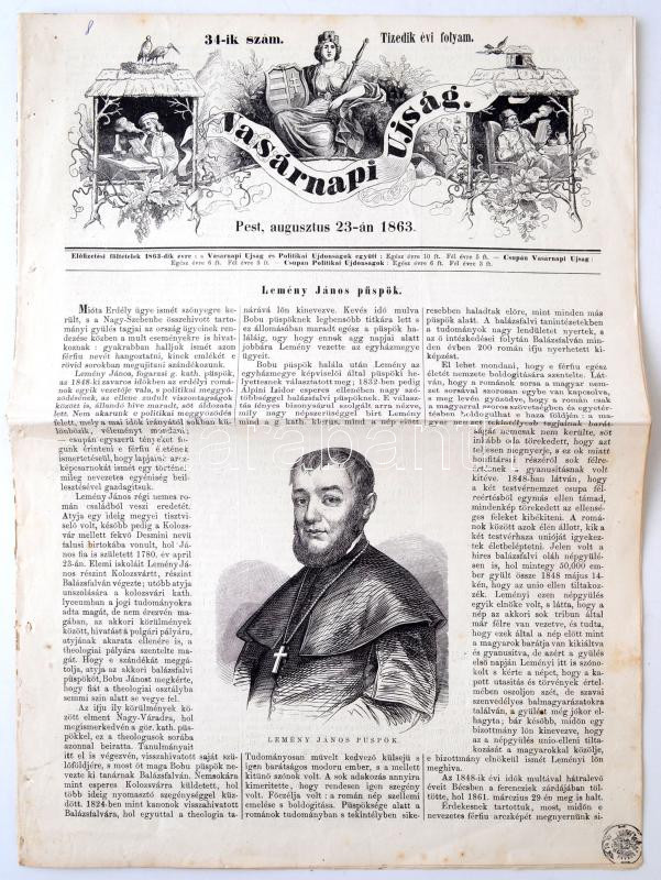 Beschreibung: 1863 a Vasárnapi Ujság 10. évf. 34. lapszáma (aug. 23.), benne érdekes írásokkal