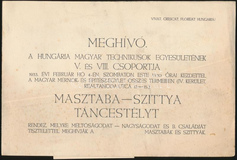 Beschreibung: 1933 Masztaba-Szittya bál táncestély meghívója és tiszteletjegye