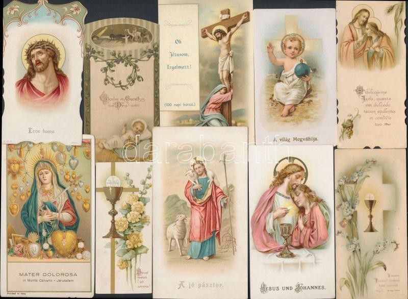 Beschreibung: cca 1900-50 Szentképek, benne lithok is, (javarészt 1945 előttiek), 25db, különböző méretben és minőségben, 11x7cm