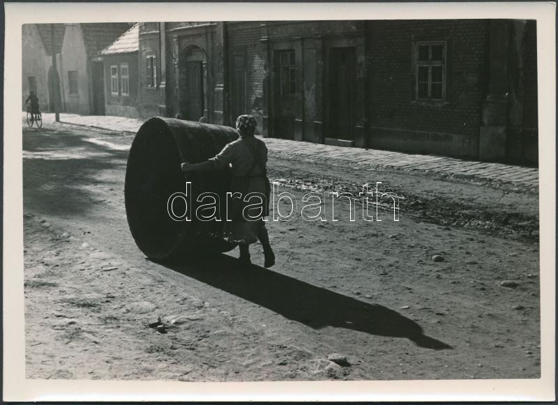 cca 1940 Sopronbánfalva, Hordót gurító nő, jelzés nélküli fotó, hátold... https://www.darabanth.com/de/266-Fernauktion/266.0/Andere-Sammelgebiete/Foto~18/cca-1940-Sopronbanfalva-Hordot-gurito-no-jelzes-nelkuli-foto-hatoldalon-feliratozva-Va~II1330619