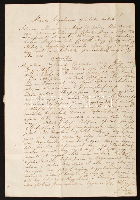 1839 Királybírónak címzett vagyonkérdésről szóló jogi irat https://www.darabanth.com/de/266-Fernauktion/266.0/Andere-Sammelgebiete/Historische-Dokumenten-Handschriften~16/1839-Kiralybironak-cimzett-vagyonkerdesrol-szolo-jogi-irat~II1333371
