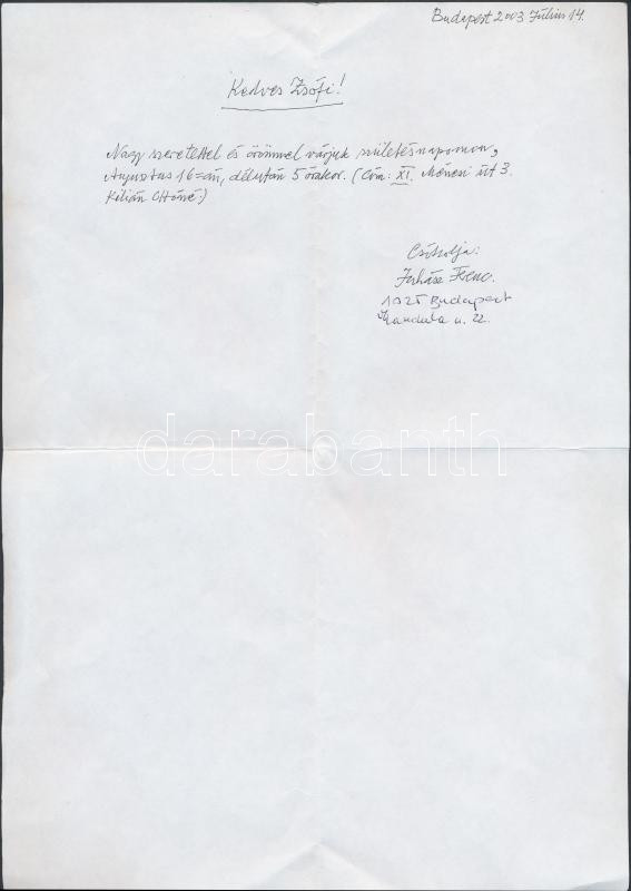 2003 Juhász Ferenc (1928-2015) Kossuth-díjas költő autográf, aláírt levele.