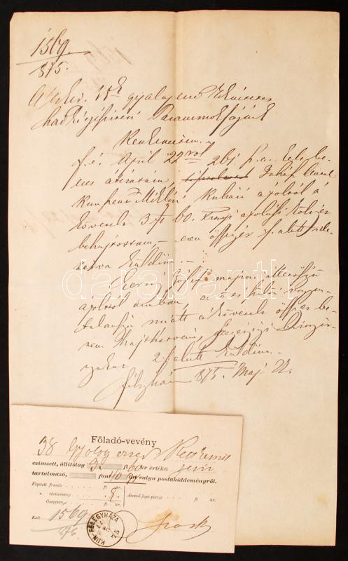 1875 "Kun-Félegyháza", Feladóvevény a 38. Gyalogezred küldem... https://www.darabanth.com/de/266-Fernauktion/266.0/Andere-Sammelgebiete/Militaria~23/1875-Kun-Felegyhaza-Feladoveveny-a-38-Gyalogezred-kuldemenyerol~II1333526