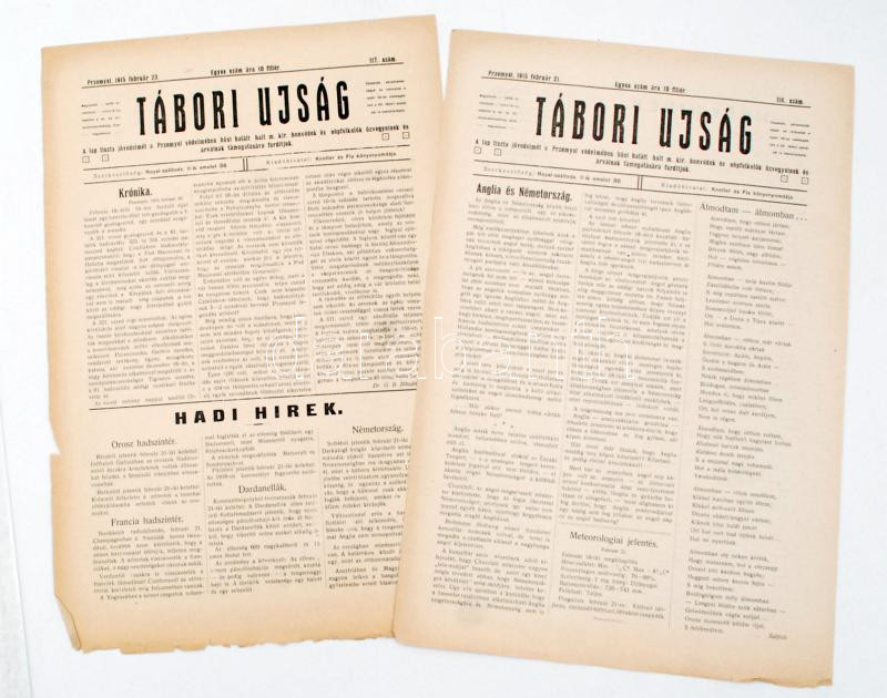 1915 Przemyśl, Tábori Újság, a 23. honvéd gyalogezred által Przemyśl első és második ostroma alatt naponta-kétnaponta megjelentetett újság 116-117. lapszáma (február)