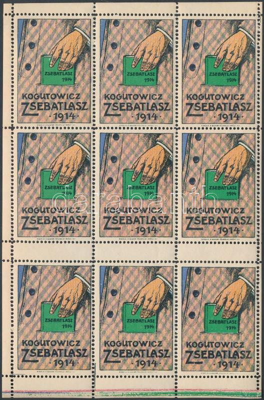 Beschreibung: 1914 Kogutowicz zsebatlasz 3 x 3-as levélzáró kisív