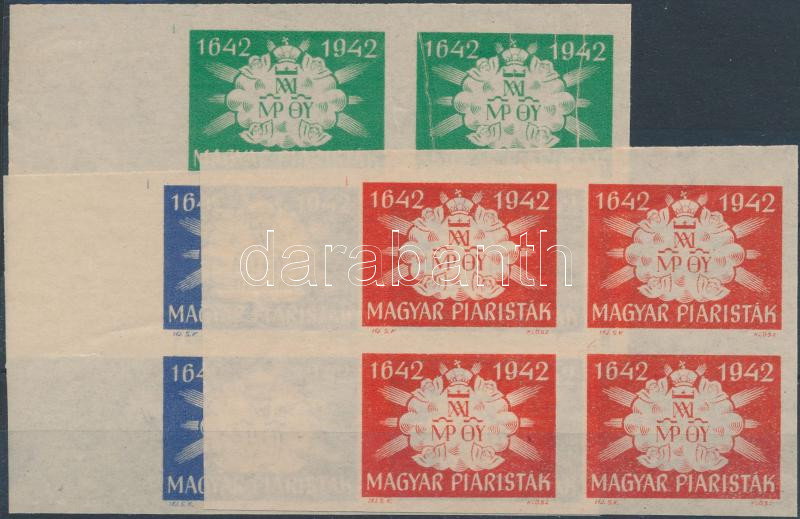 1942 Magyar Piaristák 3 színű ívszéli vágott 4-es tömb https://www.darabanth.com/de/266-Fernauktion/266.0/Andere-Sammelgebiete/Paraphilatelie~13/1942-Magyar-Piaristak-3-szinu-ivszeli-vagott-4-es-tomb~II1331991