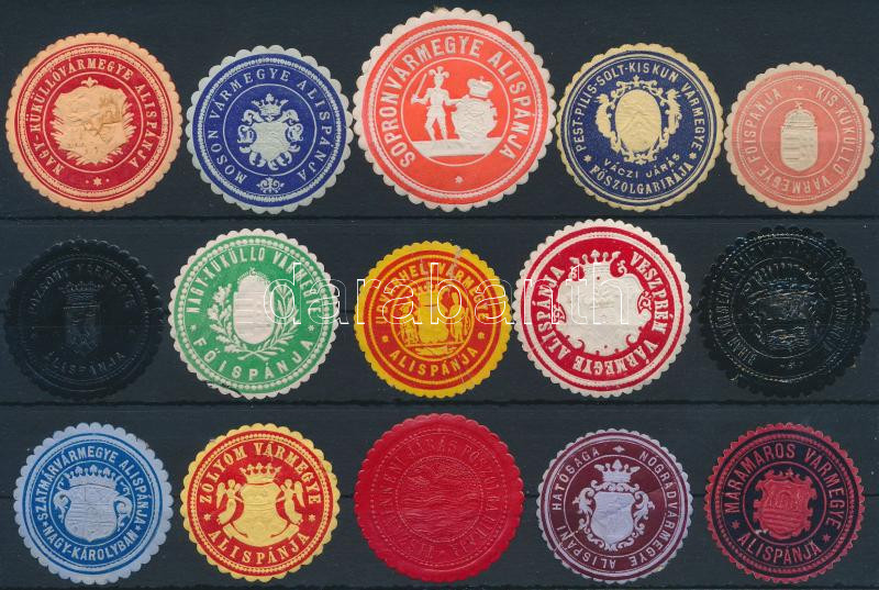 Főispánok és alispánok 14 db pecsétbélyeg https://www.darabanth.com/de/266-Fernauktion/266.0/Andere-Sammelgebiete/Paraphilatelie~13/Foispanok-es-alispanok-14-db-pecsetbelyeg~II1330588