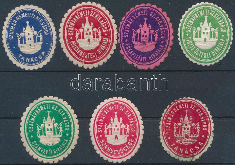Szatmárnémeti tisztségviselőinek 7 db pecsétbélyege https://www.darabanth.com/de/266-Fernauktion/266.0/Andere-Sammelgebiete/Paraphilatelie~13/Szatmarnemeti-tisztsegviseloinek-7-db-pecsetbelyege~II1330581