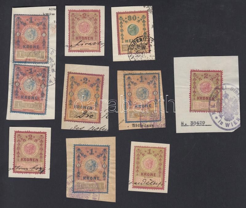 1898-1910 10 db osztrák okmánybélyeg kivágásokon tasakban ömlesztve https://www.darabanth.com/de/266-Fernauktion/266.0/Andere-Sammelgebiete/Stempelmarken~14/1898-1910-10-db-osztrak-okmanybelyeg-kivagasokon-tasakban-omlesztve~II1331904