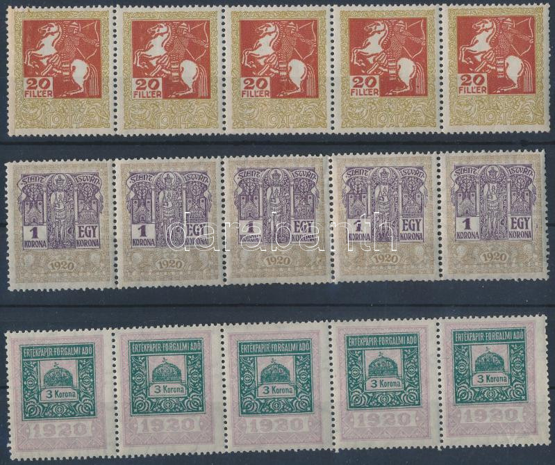 1914-1920 20f, 1K, 3K vízszintes 5-ös csíkokban https://www.darabanth.com/de/266-Fernauktion/266.0/Andere-Sammelgebiete/Stempelmarken~14/1914-1920-20f-1K-3K-vizszintes-5-os-csikokban~II1330863