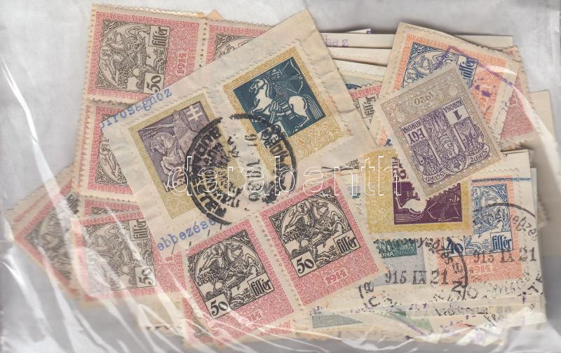 Beschreibung: 38 g 1914-es okmánybélyeg főleg kivágásokon tasakban ömlesztve