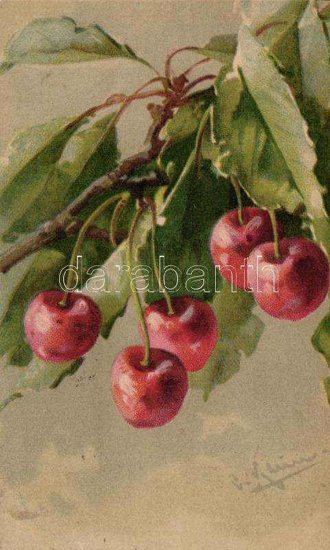 Cseresznye, csendélet / Fruit still life, cherry, litho s: C. Klein https://www.darabanth.com/de/266-Fernauktion/266.0/Ansichtskarten/Kunstlerkarten~300108/Cseresznye-csendelet-Fruit-still-life-cherry-litho-s-C-Klein~II1222638