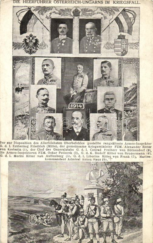 A K.u.K. hadsereg vezérkara 1914-ben a háború kitörésekor, többek között Ferenc József, Károly főherceg, Anton Haus és Conrad Hötzendorf / General staff of the Austro-Hungarian Army by the outbreak of the war, among them Franz Joseph, Archduke Charles, Vice Admiral Anton Haus and General Conrad Hötzendorf (vágott / cut)