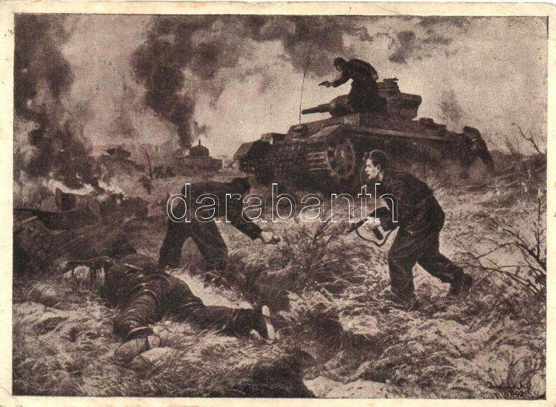 Beschreibung: Közelharc; M. kir. Csaba királyfi honv. gyorsfegyvernemi hadapródiskola tulajdona / WWII Hungarian military, tank s: Dudinszky R. (EK)