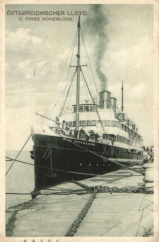 Prinz Hohenlohe steamship, Österreichischer Lloyd, on the backside the... https://www.darabanth.com/de/266-Fernauktion/266.0/Ansichtskarten/Schiffe~300086/Prinz-Hohenlohe-steamship-Osterreichischer-Lloyd-on-the-backside-the-Austrian-and-Hungarian-naval~II1168081
