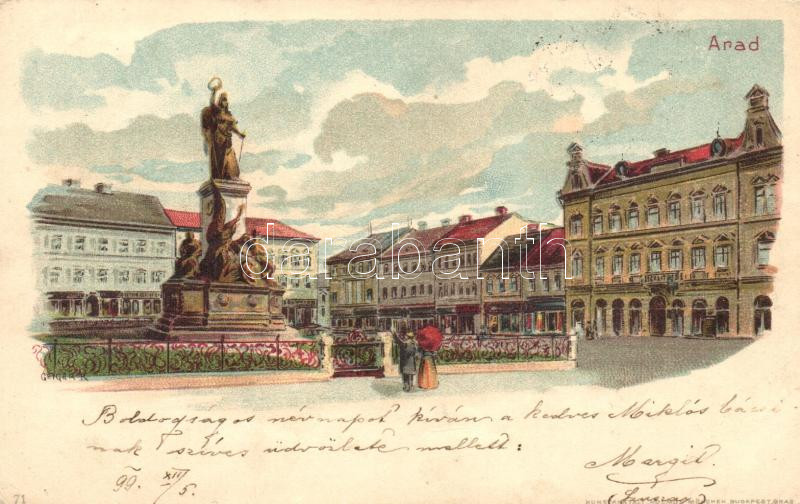 Beschreibung: 1899 Arad, Vértanú szobor / martyr's statue, Kunstanstalt Kosmos litho (EK)