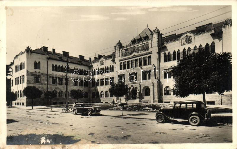 Beschreibung: Kolozsvár, Cluj; a IX. Hadtestparancsnokság épülete, irredenta díszkert / building of the 9th Corps Headquarter, Hungarian military, automobiles (fl)