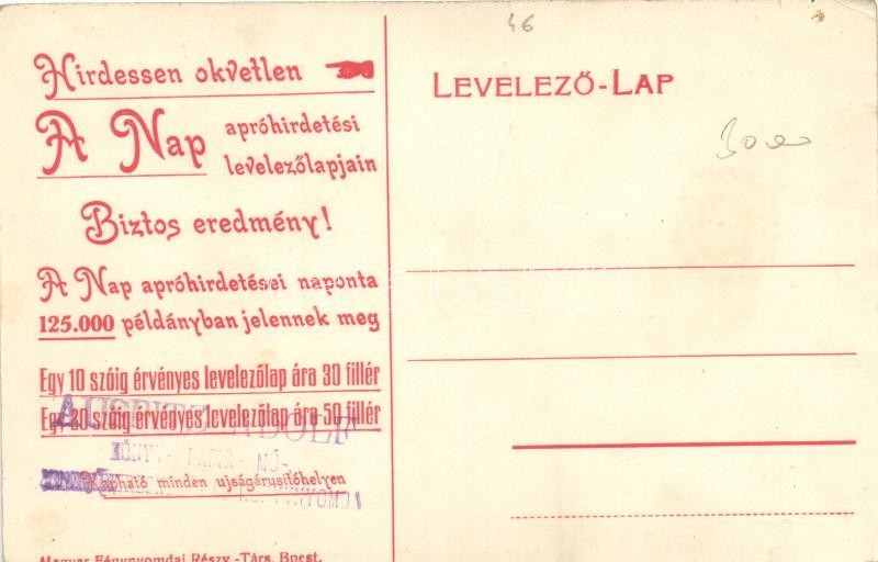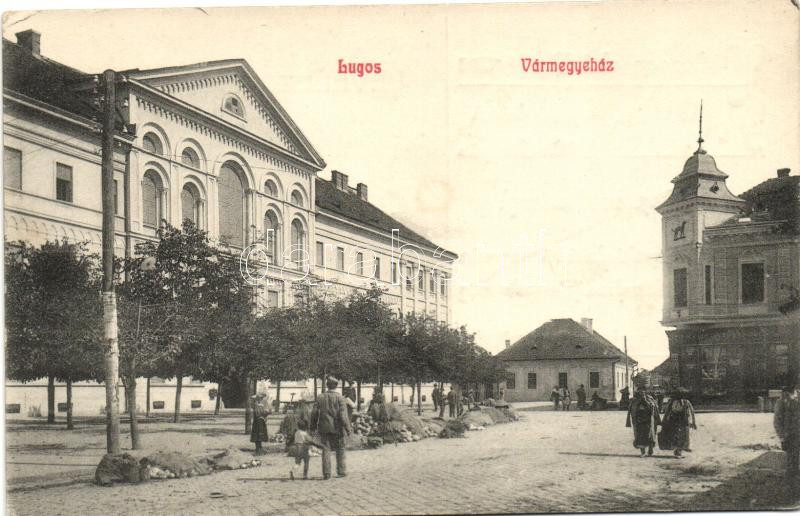 Beschreibung: Lugos, Lugoj; Vármegyeház, hátoldalon a Nap újság reklámja / county hall